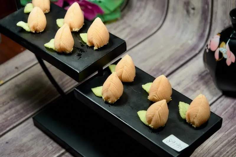 中式面点的比赛现场,每一道都是厨师精心制作的艺术品,有着晶莹剔透翅膀的蝉、形态逼真的香菇、富有文学底蕴的笔墨……让人垂涎若滴,舍不得下口。