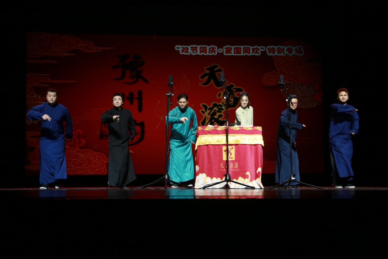 这场演出以“联合献艺”为特色,不仅由玉浩团队呈现了传统与原创兼备的相声节目,还特邀了范军老师率团同台,融合了人工智能题材新作的相声节目与纯正河南坠子,共同奉献了一场内容丰富、形式多元的高品质曲艺盛宴。