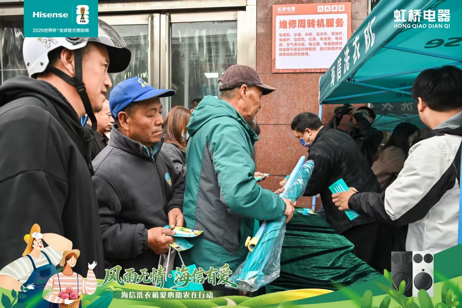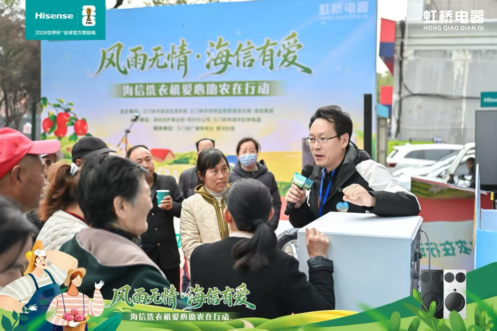 果农的需求就是行动指令。海信洗衣机总部第一时间联合本地合作伙伴虹桥电器启动应急助农方案,仅用 3 天便完成爱心伞定制、活动筹备等工作,并通过乡镇农技站、村级服务点提前摸排需求,确保捐赠物资精准送达。