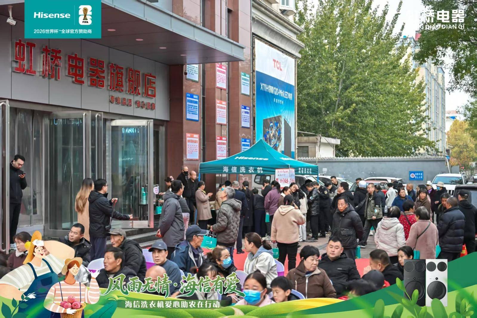 阴雨连绵挡不住助农暖意,品牌担当浸润田间地头。11月8日,由海信洗衣机联合三门峡虹桥电器主办的“风雨无情,海信有爱——海信洗衣机爱心助农在行动”活动在虹桥电器门前热闹启幕。这场集爱心捐赠、产品惠民、长效服务于一体的公益行动,不仅为当地果农送去 300 把定制爱心伞,更是现场向果农捐赠包括海信三筒洗衣机(海信棉花糖Ultra全家筒)在内的多款洗衣机产品,以科技适配的家电产品与精准服务,搭建起 “企业助农、科技惠民” 的实践桥梁,成为三门峡政企协同推进乡村振兴的生动注脚。