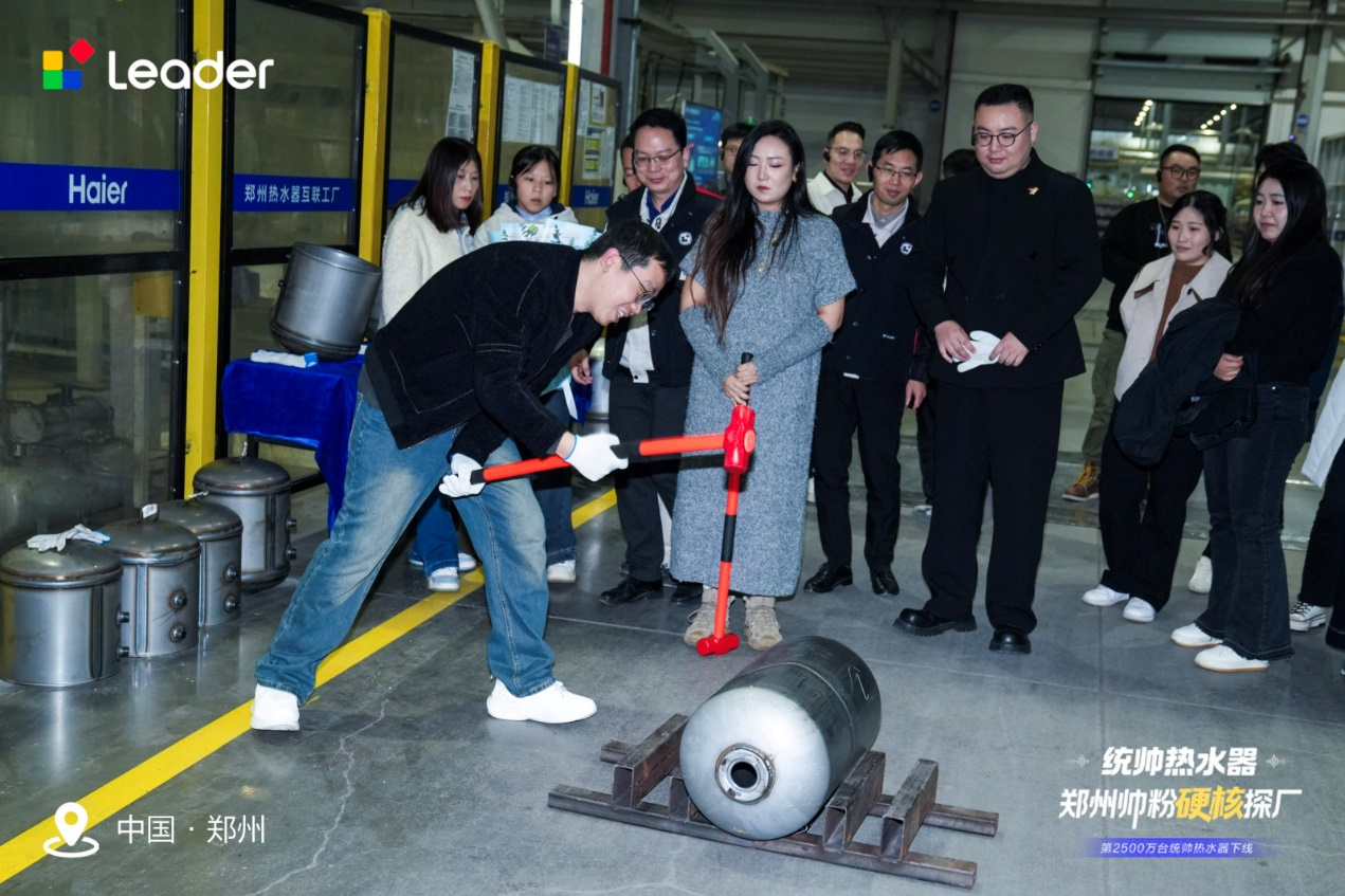 “砰——砰——”一阵清脆有力的锤击声,在郑州海尔热水器互联工厂内响起。11月8日,Leader统帅“零距离宠粉行动”活动现场,统帅热水器用户抡起重锤,接连砸向一台热水器金刚无缝胆。在众人注视下,内胆表面仅留下几道浅痕,结构依然完好。这场由用户亲自进行的实测,不仅展现出产品过硬的品质,也拉开了第2500万台统帅热水器下线仪式的序幕。