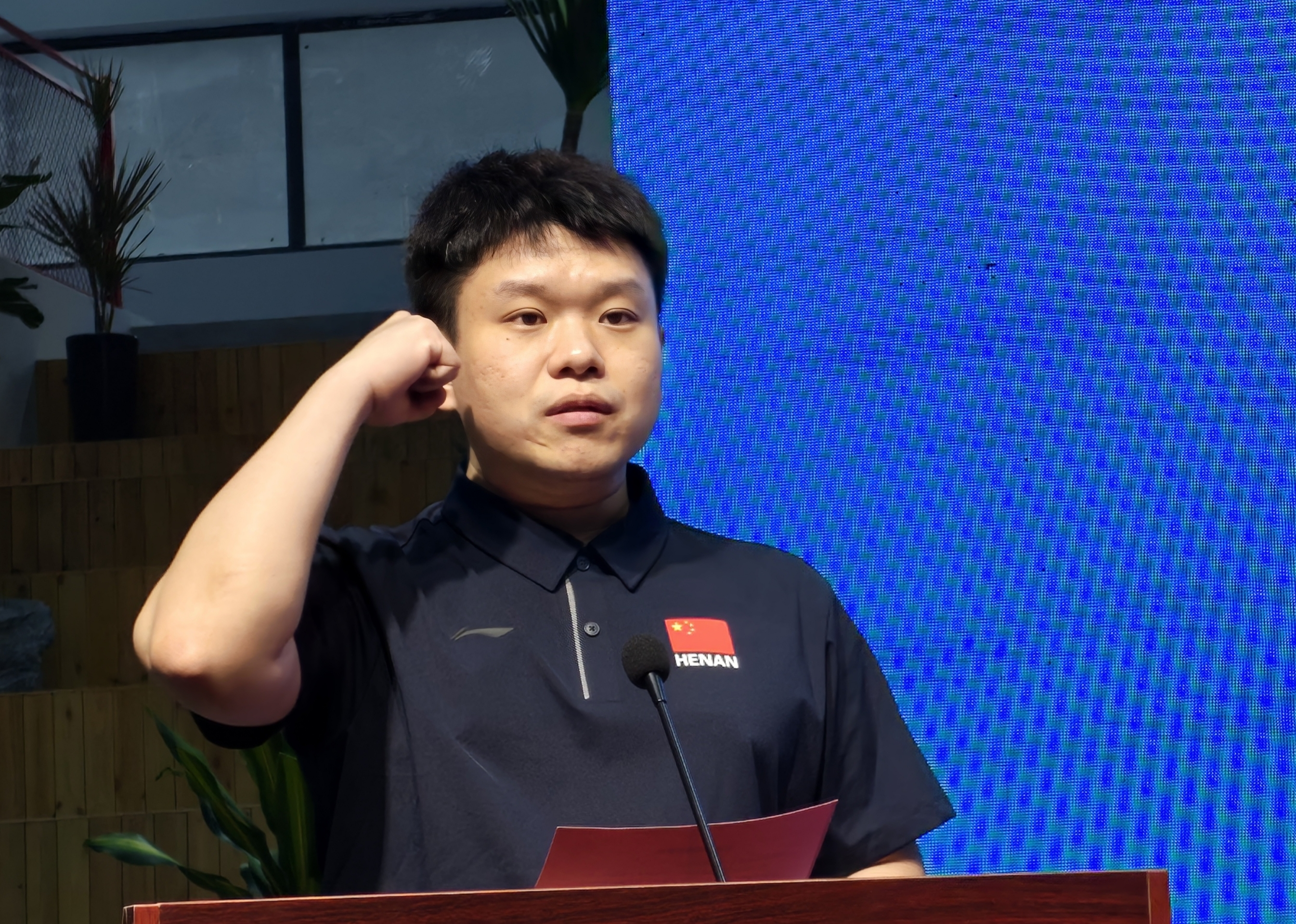 运动员代表赵季平、裁判员代表王金浩,向赛事庄严宣誓,河南省保龄球运动协会赵明轩会长致欢迎词,随着河南省体育发展基金会理事长雷志章宣布比赛开幕,2025年中国保龄球锦标赛同时在东方保龄球馆、帕泡保龄球馆两个比赛场馆拉开为期7天比赛战幕。